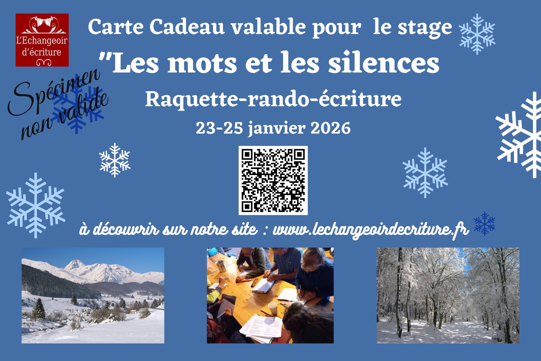 Le stage raquette-écriture est aussi disponible en carte cadeau. Pour tout renseignement nous contacter ICI.